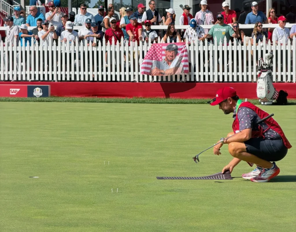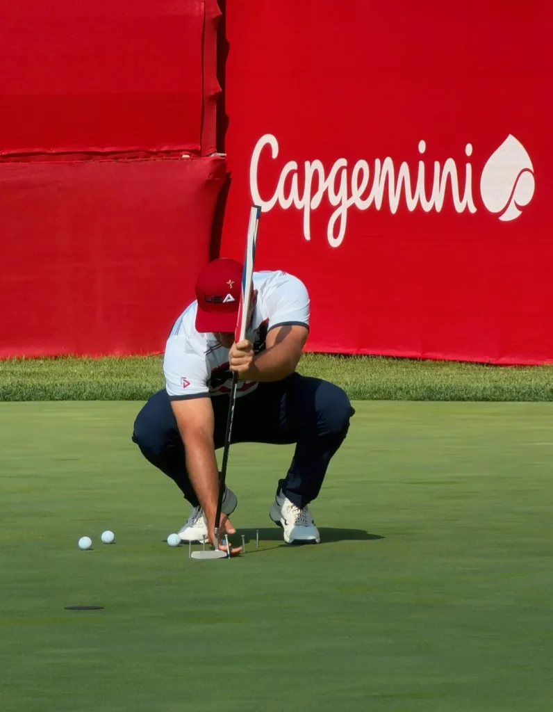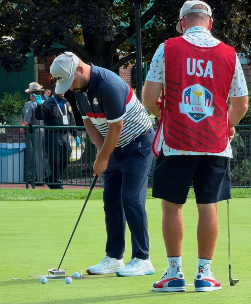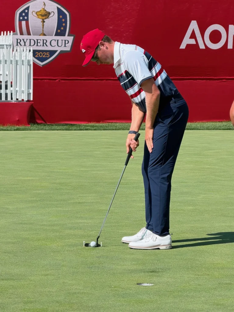 I’ve rounded up eight players I observed on the practice putting green at the Ryder Cup and detailed how they were practicing. While some of the techniques and putting training aids were more standard, like string lines, mirrors and putting gates, others were much more sophisticated and elaborate.